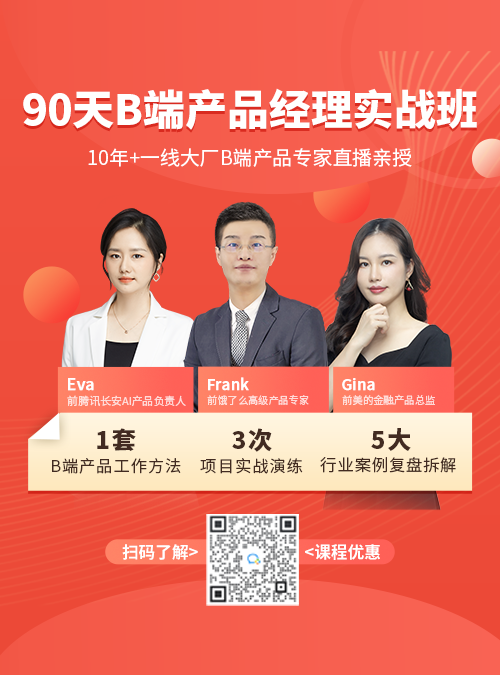 基于此,腾讯课堂&起点课堂联合打造了《90天B端产品经理实战班》,多位BAT大厂10年+经验B端产品专家直播亲授,帮助大家顺利转岗/入门B端产品。
