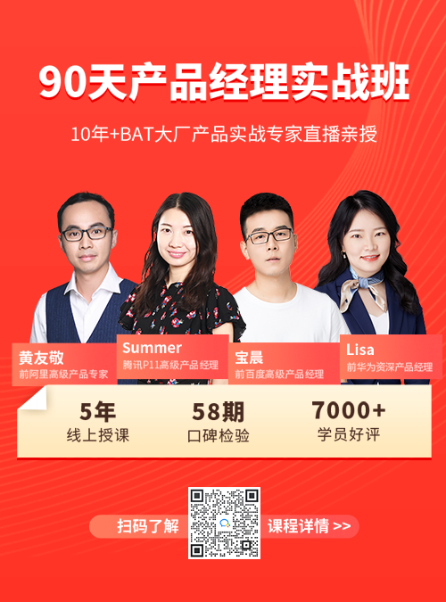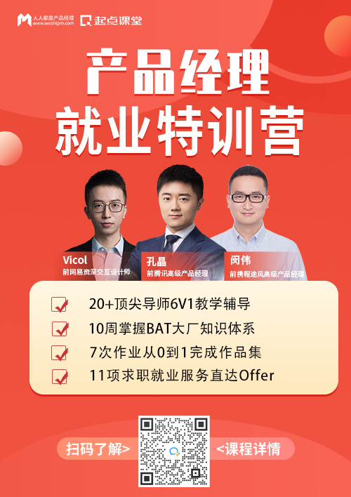 由腾讯课堂&起点课堂联合打造,经过人人都是产品经理社区10年沉淀,课研部门和大厂导师几十次精心打磨,经受过市场多次严苛检验,专为转岗/入行的产品新人打造的一门能力进阶课。