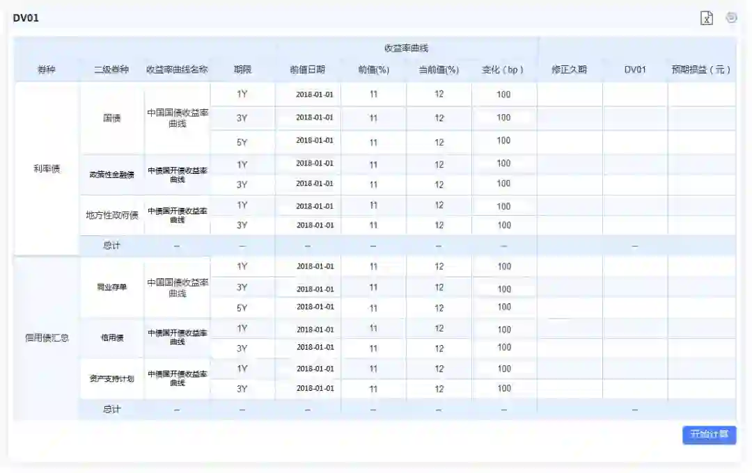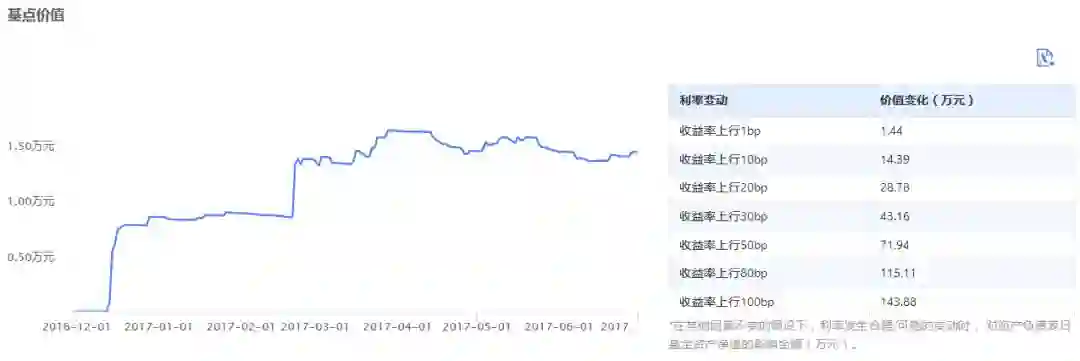 围绕组合的利率风险,萝卜投资开发了基点价值测算工具,用以衡量当市场利率变动了不同水平时,组合价值的变动情况。