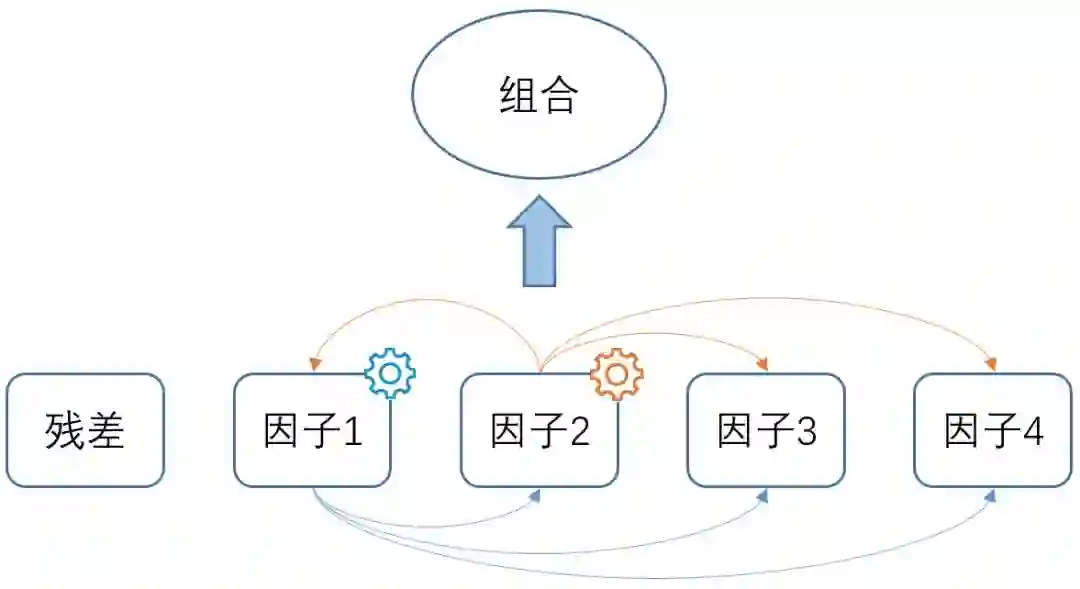 图2给出了一个示例。示例中的组合受到4个风险因子的影响,如果因子1和因子2发生变化,那么因子3和因子4由于受到相关性影响也会发生变化。通过上文描述的方法,我们可以测算各个因子受影响的程度,并最终估算出组合的业绩变化。