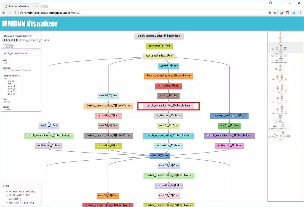 3. 打开MMdnn模型可视化器并选择文件keras_inception_v3.json