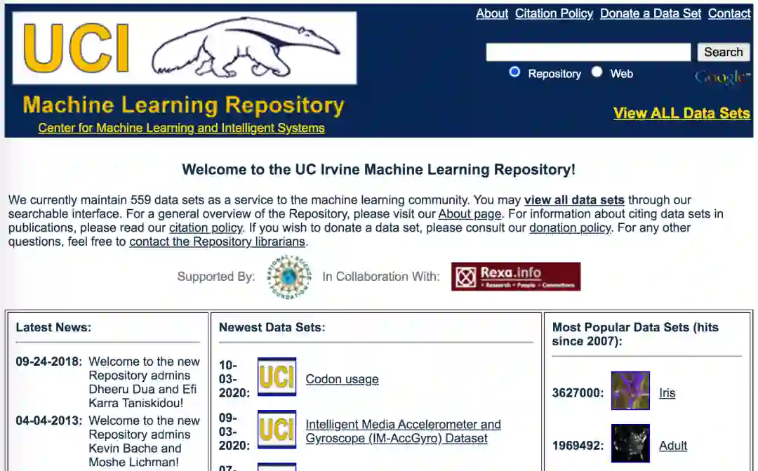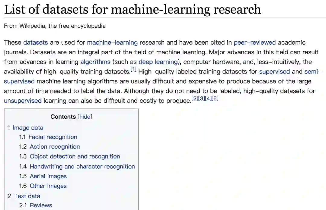 网址:https://en.wikipedia.org/wiki/List_of_datasets_for_machine-learning_research