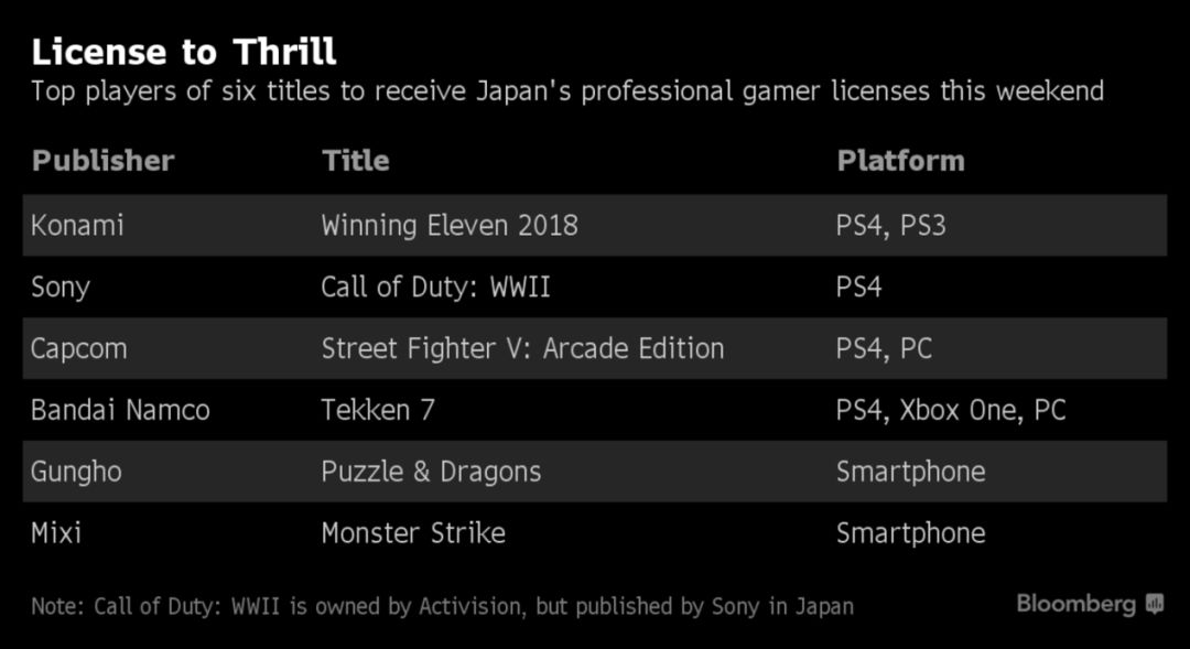 六款游戏的优胜者将在本周末获得日本职业玩家执照