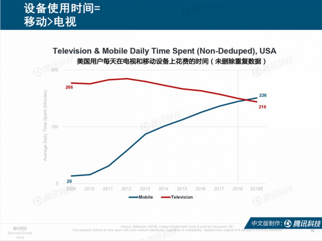 真的很惊讶,美国人移动端的时间现在才超过了电视端。而回到国内,也许数据方面移动设备仍不占优,但从我们身边草根调研来看,电视如今就只有一个功效:和沙发一起,催眠助眠。