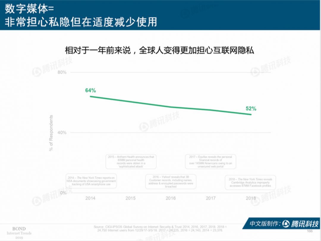 但是,很遗憾地讲,公众的隐私担忧加剧,很大一部分源于这几年互联网并没有新鲜事物诞生。大众产生审美疲劳时,就会把隐私这事儿拿出来说道了。
