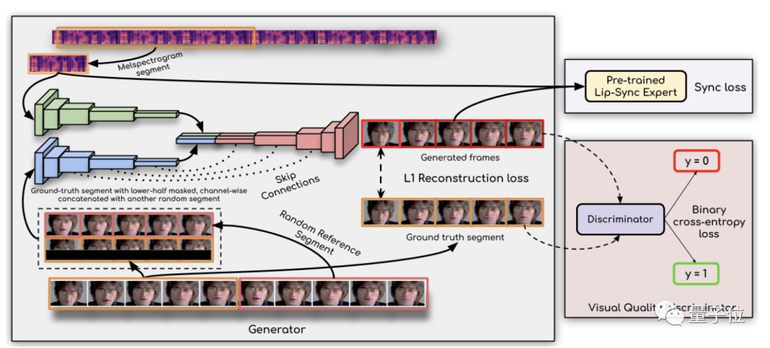 同时还使用了视觉判别器来提高视觉质量和同步精度,进一步提高模型质量。