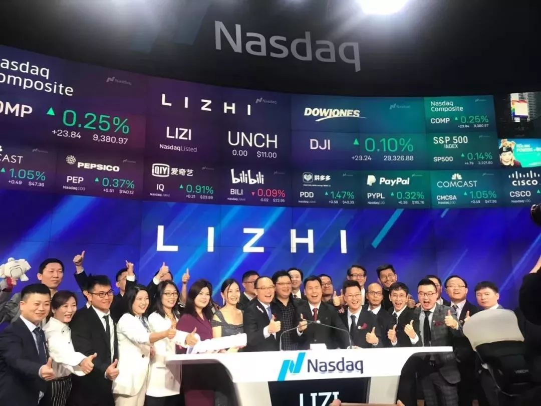 北京时间2020年1月17日晚上10点半,UGC音频社区「荔枝」在纳斯达克交易所挂牌上市,股票交易代码为“LIZI”,发行价为每股美国存托股(ADS)11美元。