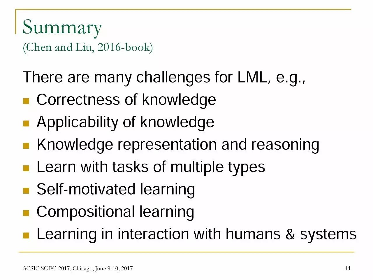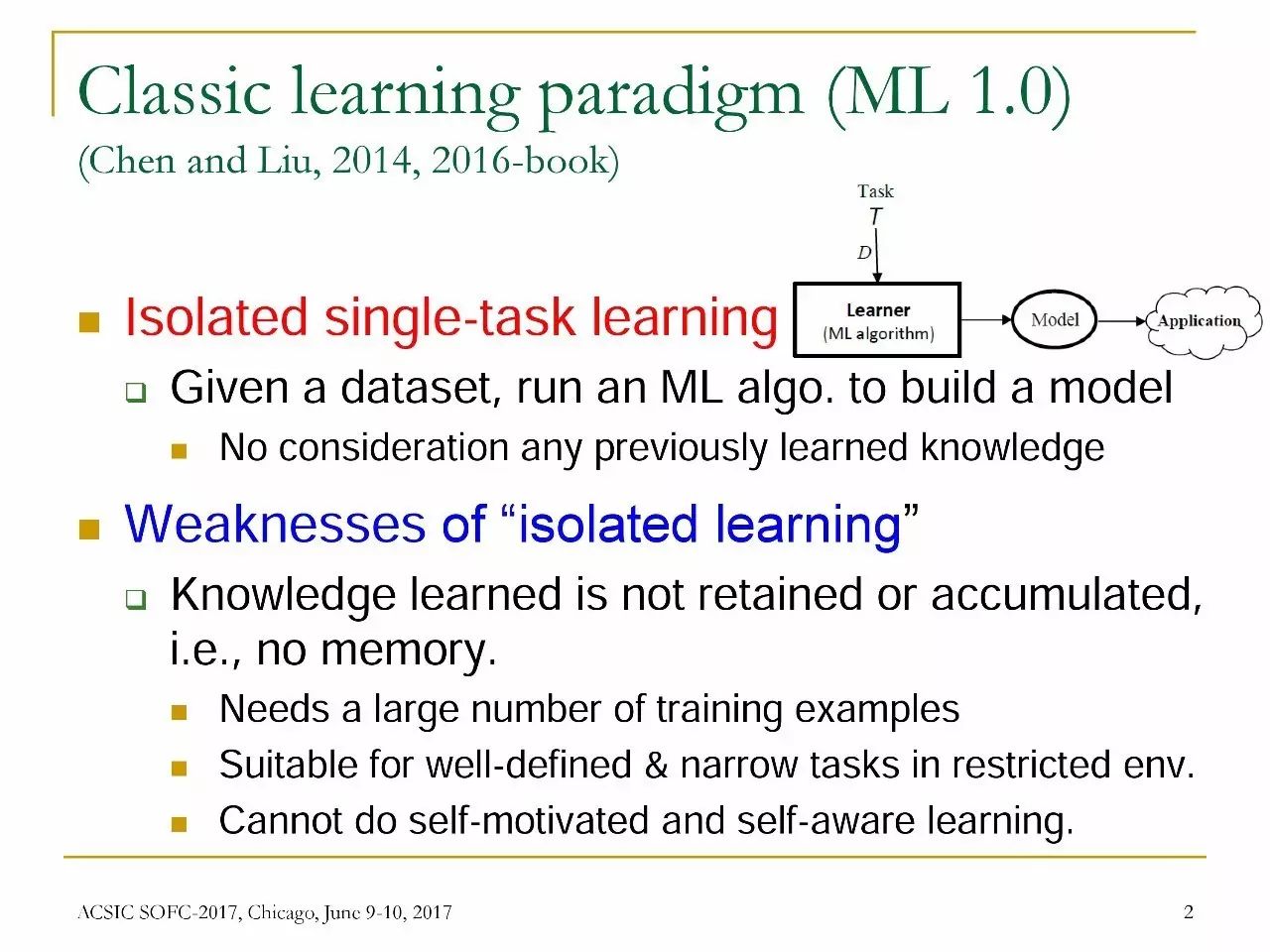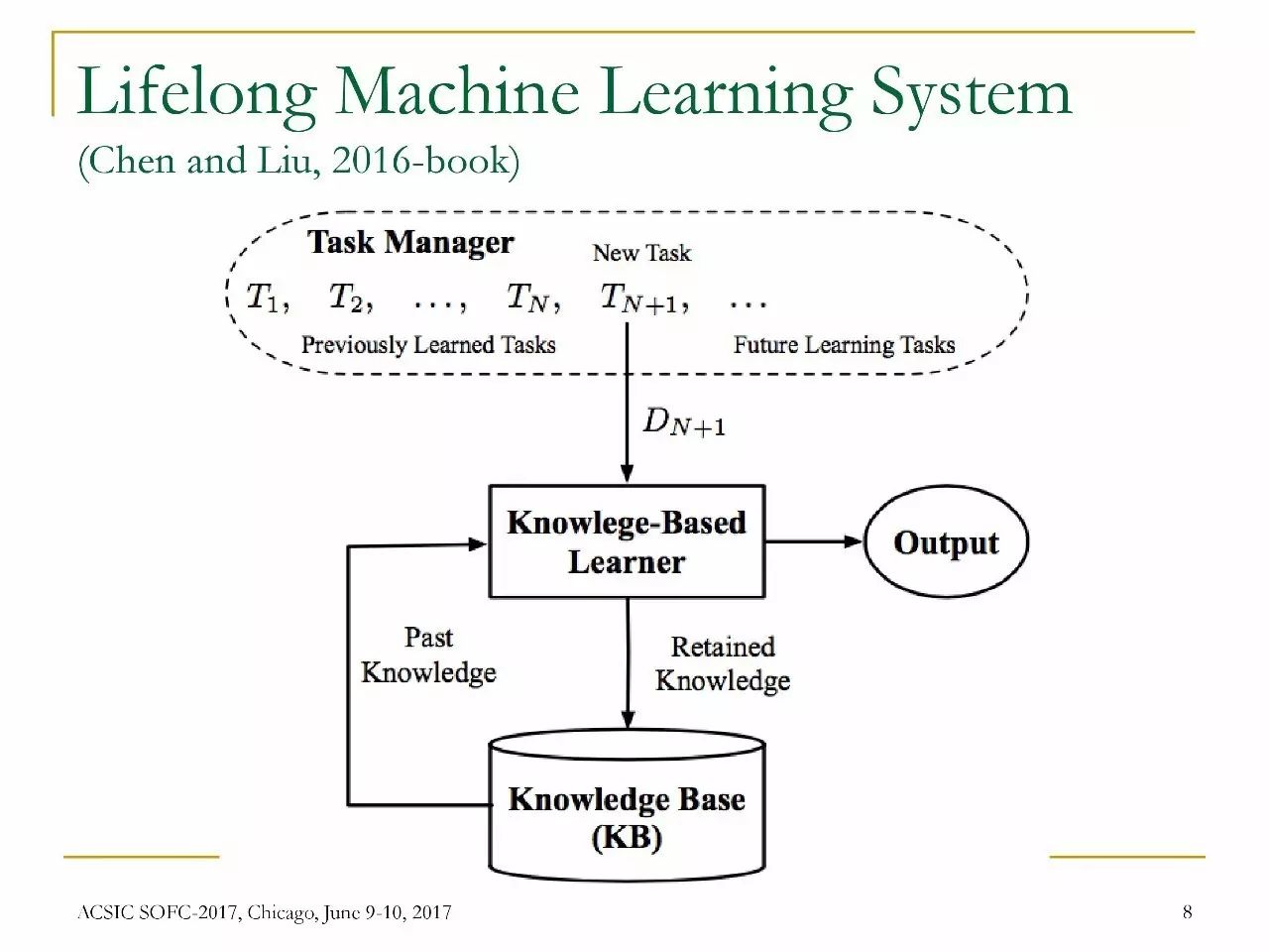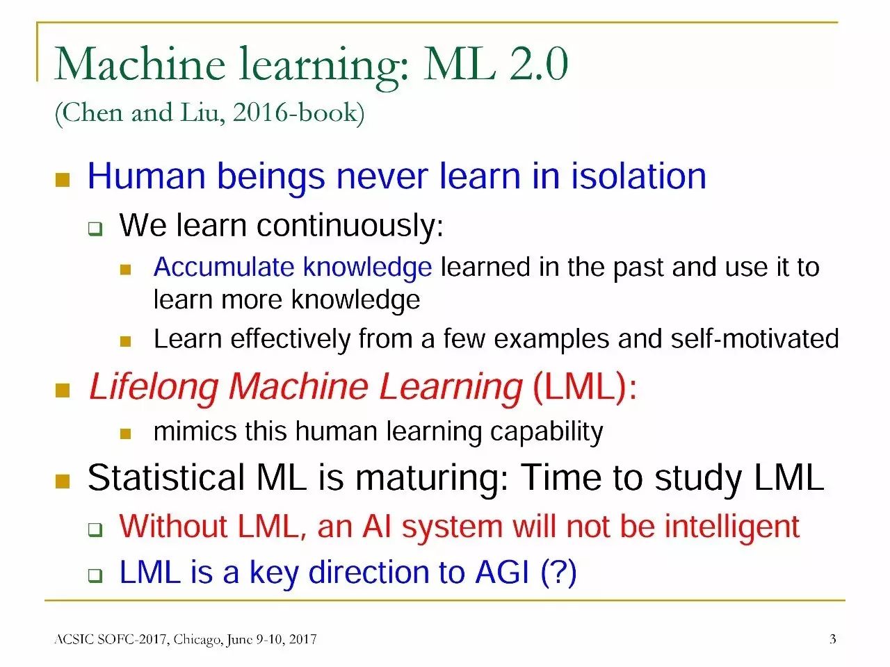 其中,伊利诺伊大学芝加哥分校的刘兵教授,演讲题目为《打造终身学习的机器》,涉及“终身机器学习”(Lifelong Machine Learning,LML)的概念与机器学习密切相关。