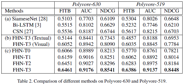 除了图片之外,提供语义信息的文本描述对于兼容性建模也是非常有用的,作者使用和图片同样的方式将文本信息转换为二进制码,并得到预测分数。文中用