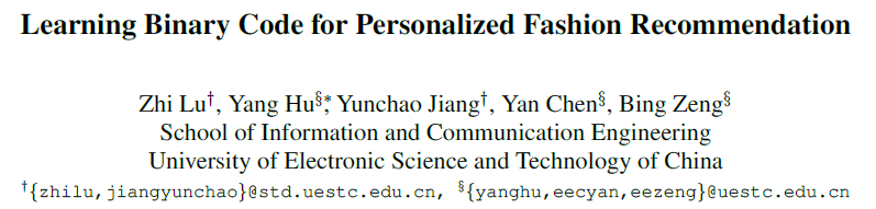 题目: Learning Binary Code for Personalized Fashion Recommendation