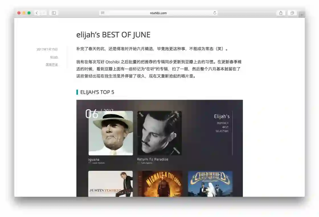 @inkiron:OTOHIBI 是一个由三位作者共同经营音乐博客,不定期更新他们觉得最佳的专辑。三位经营者的对音乐的爱好和口味都不一样,你可以在 OTOHIBI 听到爵士、电音、纯音乐、流行、Indies、OST、HIPHOP、R&B 等种类非常丰富的音乐。