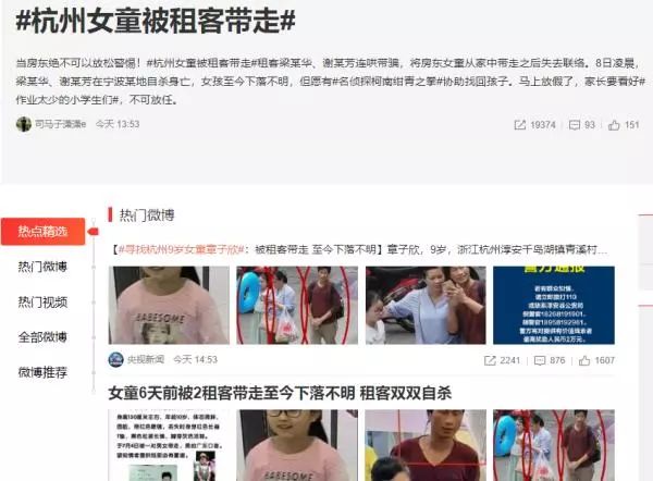 比如在最近的热搜排名中,微博对「杭州女童」一案的舆情引导中,始终尝试着融入「邪教」这一概念。即使在警方辟谣排除邪教说法后,仍然坚持在热搜中宣传「三山国王」这一概念。对商业化的微博而言,用户的兴趣和讨论就是其生命线,这很危险。