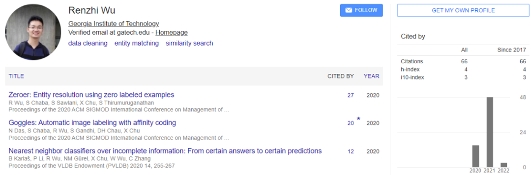 Renzhi Wu 是佐治亚理工学院计算机科学博士生,其导师为 Xu Chu 教授。他的研究重点是使用机器学习来解决具有挑战性的数据管理问题,例如实体匹配、基数估计和真值推理。在就读佐治亚理工学院之前,他在清华大学获得了学士和硕士学位。