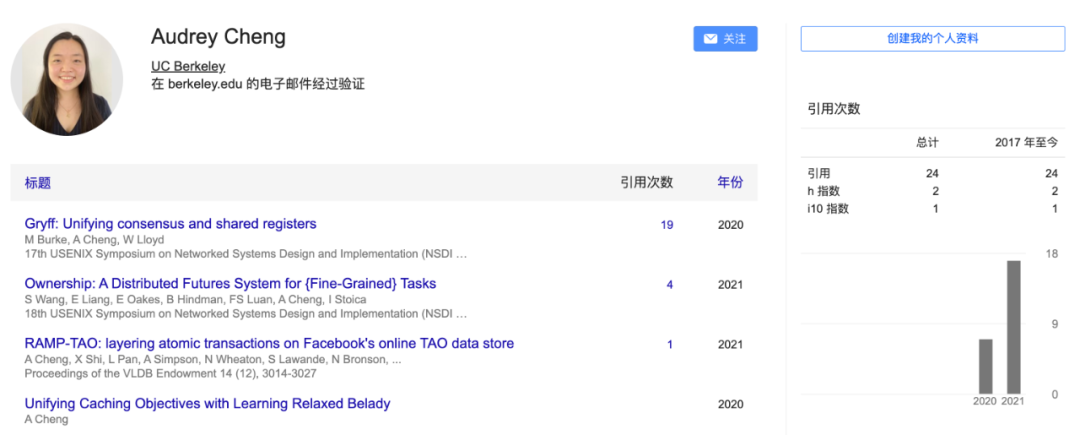 Audrey Cheng 是加州大学伯克利分校 RISELab 的一名博士生,受到 Ion Stoica 和 Natacha Crooks 两位导师的指导。研究重点是数据库系统的交易处理,其中更为关注在大规模条件下提供更强安全性和正确性保证的挑战。在伯克利之前,她在普林斯顿大学获得了运筹学和金融工程学士学位。