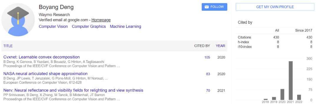 Boyang Deng 即将成为斯坦福大学的博士生,同时也在 Waymo Research 任研究科学家。此前,他还曾在 Geoff Hinton 领导的谷歌大脑多伦多分部工作。Boyang Deng 的主要研究兴趣是使用机器学习解决计算机视觉和计算机图形学交叉领域的问题。