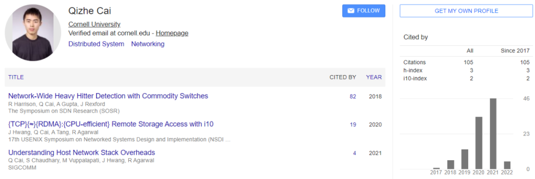 Qizhe Cai 是康奈尔大学的博士生,其导师为 Rachit Agarwal。他的研究广泛涉及系统和网络,特别关注为太比特以太网(Terabit Ethernet)构建网络系统和协议。此前,他在密歇根大学获得了计算机科学学士学位,并在普林斯顿大学获得了计算机科学硕士学位。