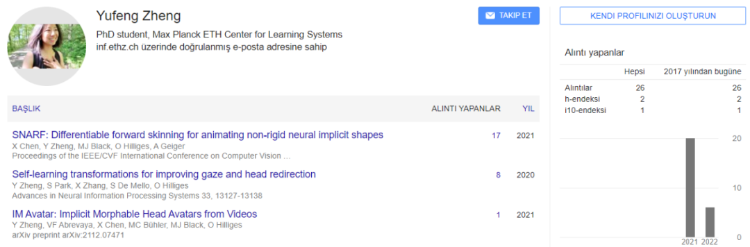 Yufeng Zheng 是马克斯 - 普朗克 · 苏黎世联邦理工学习系统中心(Max Planck ETH Center for Learning Systems)的一年级博士生,这是苏黎世联邦理工学院和马克斯 - 普朗克智能系统研究所的联合项目。她的导师为 Otmar Hilliges 教授和 Michael Black 教授。她的研究主要在于以人为中心的计算机视觉和图形领域,重点是基于学习的人脸和身体 3D 建模。在攻读博士学位之前,她获得了清华大学学士学位和苏黎世联邦理工硕士学位。