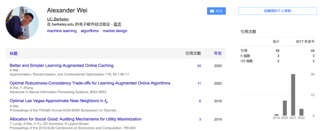 Alexander Wei 是加州大学伯克利分校计算机科学的博士生,受 Nika hagtalab、Michael i. Jordan 和 Jacob Steinhardt 的指导。兴趣主要集中在算法、经济学和机器学习的交叉研究,特别是对于在复杂环境中开发学习、决策和合作的原则。他的工作已经得到了 SODA 最佳学生论文奖和 INFORMS Auctions & Market Design Rothkopf 奖 (第三名) 的认可。在来到伯克利之前,他在哈佛大学获得了计算机科学和数学的学士学位和计算机科学的硕士学位。