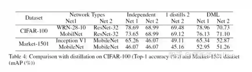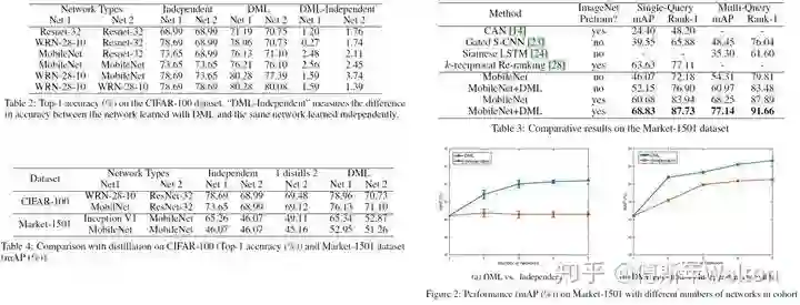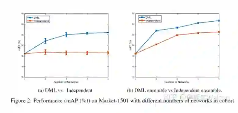 本文打破这种预先定义好的“强弱关系”,提出DML,即让一组学生网络在训练过程中相互学习、相互指导,而不是静态的预先定义好教师和学生之间的单向转换通路。