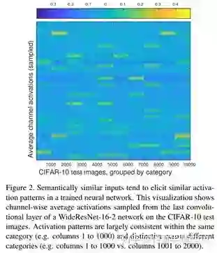 这里分成了十类,每一类对应相邻的1000张图片,可见,相邻的1000张图片的激活情况是类似的,而不同类别之间有明显差异。