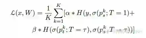 最后训练的loss函数是两个学生网络分别训练,各自的cross-entropy Loss和KL散度Loss之和。