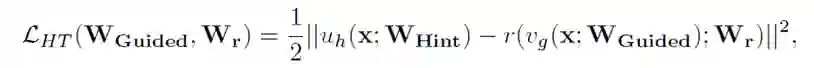 1. 选择teacher模型特征提取器的第N层输出作为hint,从第一层到第N层的参数对应图中的Whint;
