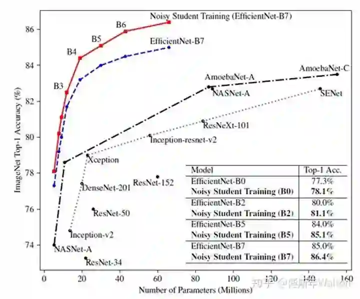 继续使用KD softed labels, 但是聚焦data issue,通过使用更大的噪声数据集来训练student模型。