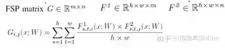 Gram matrix的每个值都可以说是代表i通道的feature map与通道j的feature map互相关的程度。x代表输入图像,W代表FSP weights,F1/F2是产生的feature map,h*w代表feature map的height, width;m/n代表channel。