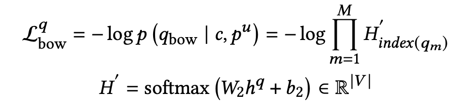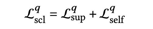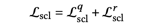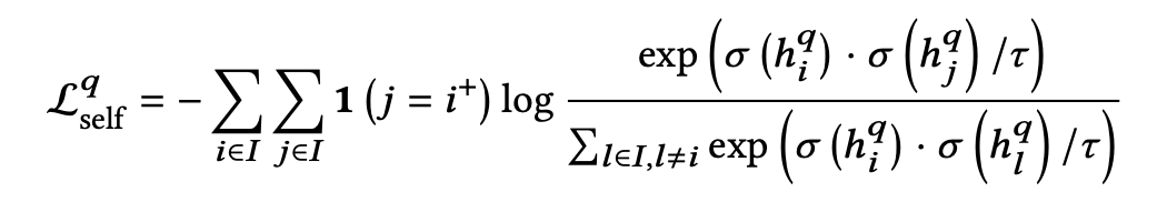 对于没有语义标注的用户查询语句,我们采用简单的自监督对比学习目标,只有增强后的样本会被当作成为正例,具体的计算公式如下: