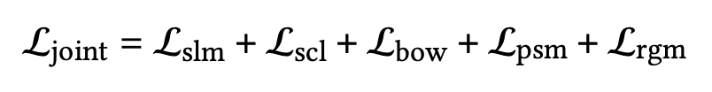 最终,我们采用多任务学习的方式联合训练以上五个预训练目标,最终的损失函数定义如下: