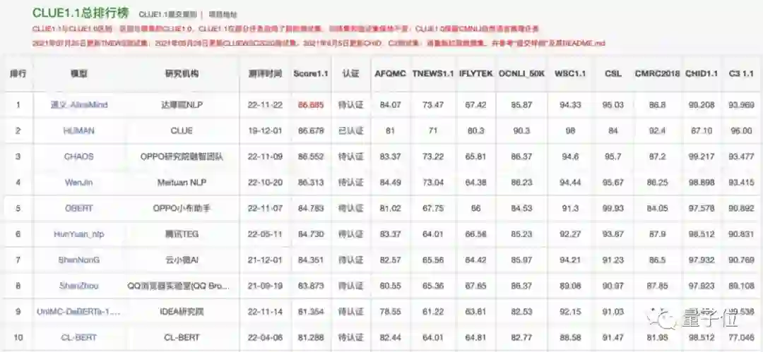 最新中文语言理解领域权威榜单CLUE,诞生了一项新的纪录: