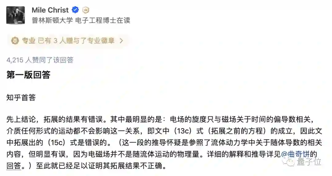 在高校物理学者质疑之前,知乎上不少物理系学生纷纷提出了自己的看法。