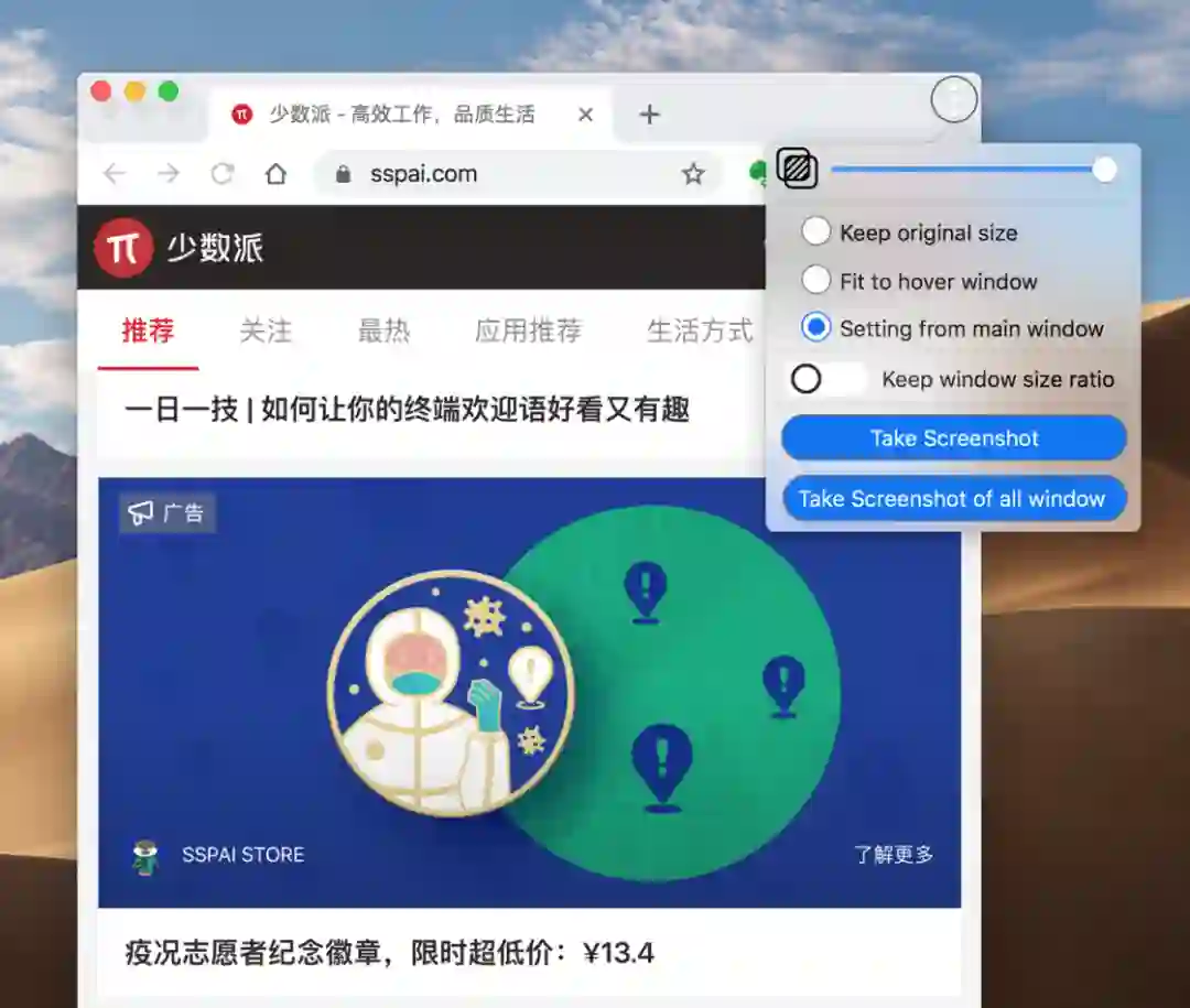 你可以在 Mac App Store 下载 Hover-Floating Window Image,售价 30 元。