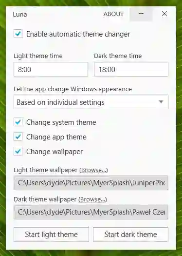 ▍Luna:简单易用的 Windows 10 深色主题自动切换工具