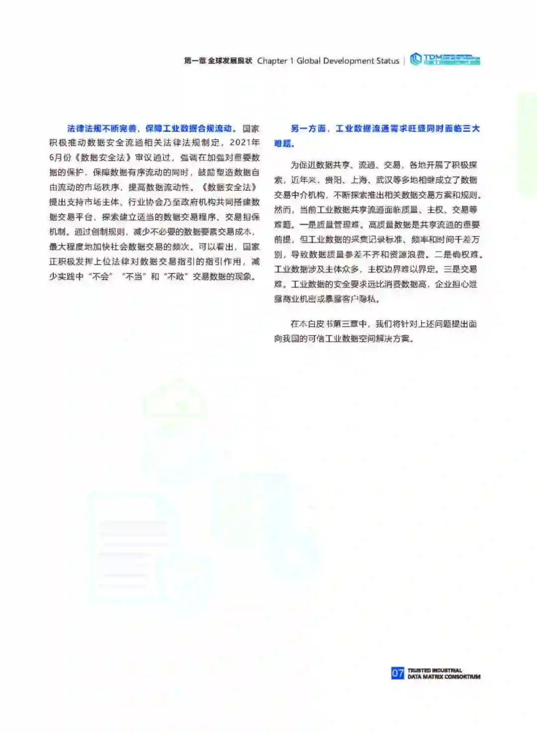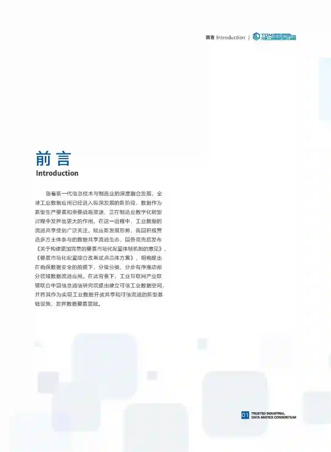 随着新一代信息技术与制造业的深度融合发展,全球工业数据应用已经进入纵深发展的新阶段,数据作为新型生产要素和重要战略资源,正在制造业数字化转型过程中发挥出更大的作用。在这一进程中,工业数据的流通共享受到广泛关注。顺应新发展形势我国积极营造多方主体参与的数据共享流通生态,国务院先后发布《关于构建更加完善的要素市场化配置体制机制的意见》《要素市场化配置综合改革试点总体方案》,明确提出在确保数据安全的前提下,分级分类、分步有序推动部分领域数据流通应用。在此背景下,工业互联网产业联盟联合中国信息通信研究院提出建立可信工业数据空间,并将其作为实现工业数据开放共享和可信流通的新型基础设施,发挥数据要素禀赋。