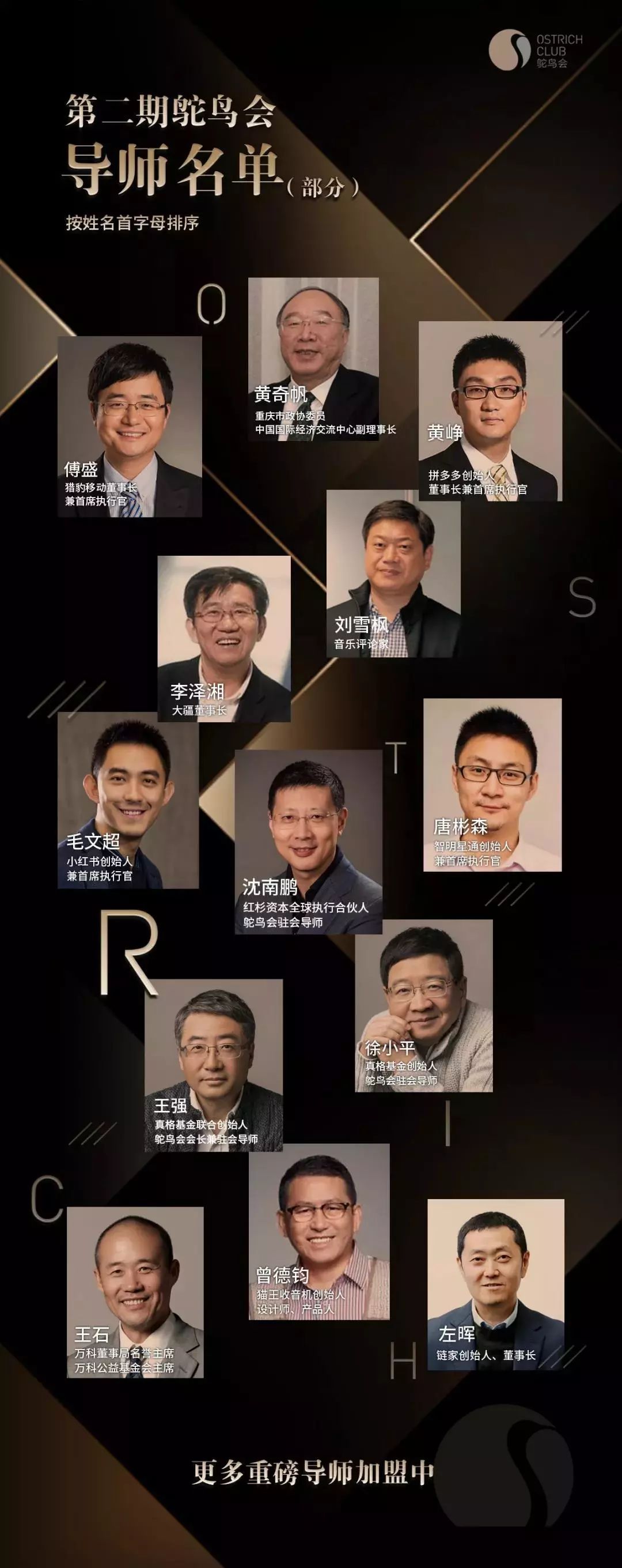 红杉资本中国基金与真格基金联合推出的高端创业俱乐部 “鸵鸟会”第二期 已进入倒计时阶段: