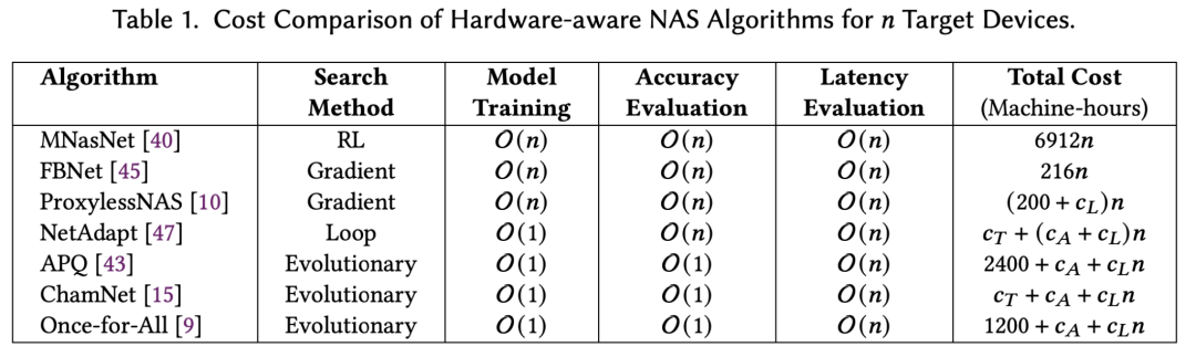 高效进行硬件适配NAS的关键是快速在目标设备上评估各个神经架构的延推理延迟。如果简单地直接测量每个架构的延迟,会导致一次NAS就需要数周甚至数月。所以SOTA硬件适配的NAS主要依赖于为每个设备建立延迟查找表或预测器。