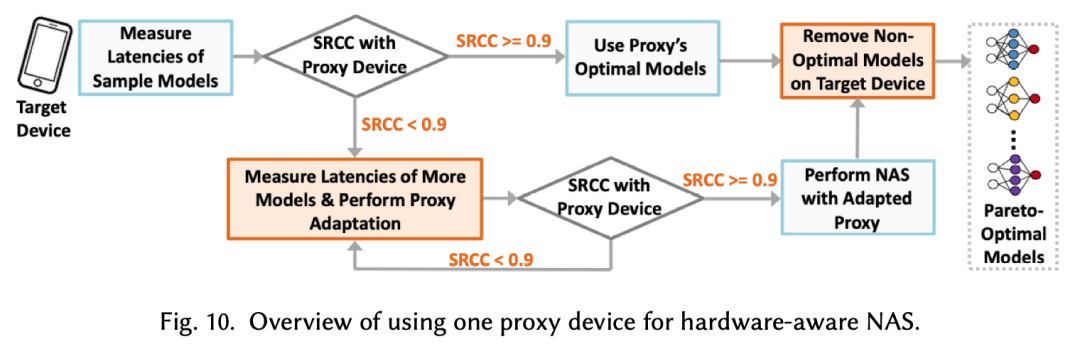 在此基础上,只需要选择一个设备作为代理并为它构建延迟预测器 —— 而不是像SOTA那样为每个单独的目标设备构建延迟预测器 —— 就足够了。