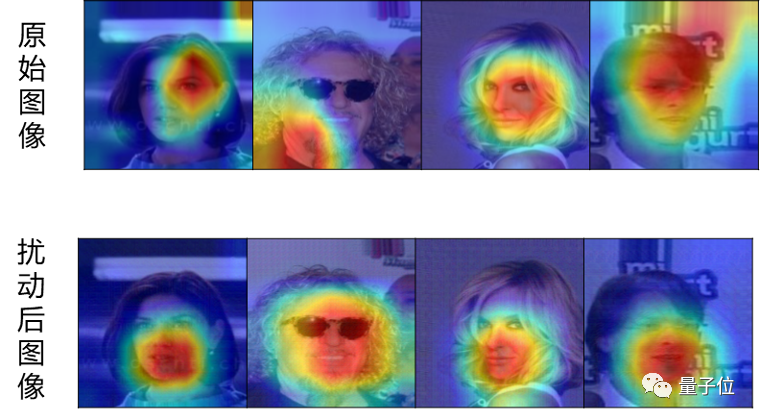 通过观察注意力显著图可以发现,有性别偏见的微笑识别模型,会关注于原始图像的头发区域,不可避免地使用性别相关特征进行预测。相比之下,该方案可以让模型更关注于图像嘴部区域,从而不受敏感属性的影响,做出公平的预测: