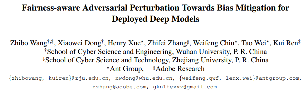 目前,该研究成果的相关论文“Fairness-aware Adversarial Perturbation Towards Bias Mitigation for Deployed Deep Models”已被CVPR 2022录用。