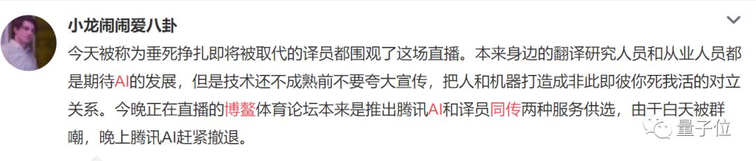 就在当天,还出现了腾讯急找同传救场的传言。但后来被证实,这不是腾讯AI同传团队干的。