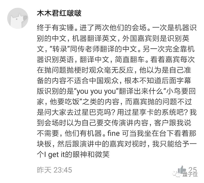值得注意的一点是,跳出来打脸这些AI同传的急先锋,好多都是专门做同传的。