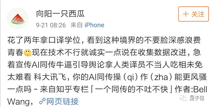 还有人觉得,自己辛辛苦苦学了那么多年的同传,被一个冒充的机器耀武扬威,非常心寒: