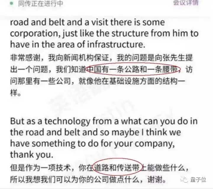 毫无疑问,屏幕上的译文是用语音识别技术识别了人类译员说出来的译文,而且识别得还不太准。
