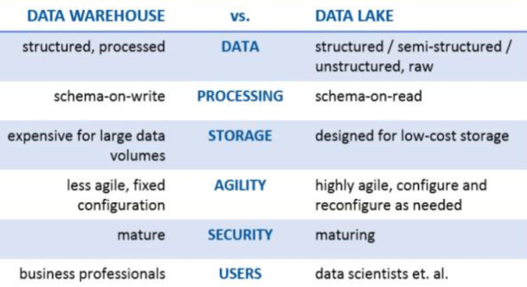湖有点像一个开放的储物空间,可以存放结构化数据、非结构化数据、半结构化数据,存储成本很低,很灵活。仓更像是一个有无数小格子的储物间,所有数据需要按照要求放到小格子里。