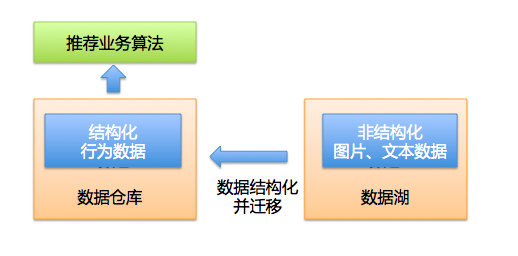 在仓和湖割裂的条件下,一个常见做法是将数据湖中的非结构化数据提取特征并结构化,然后将结构化的数据迁移到数仓体系内去做最终的特征向量拼接,并且训练推荐业务模型。在这种模式下,需要同时运维两种数据存储模式体系,并且需要做大量数据迁移工作,费时费力。