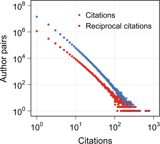 研究者把科学家视作网络中的节点,作者之间的互利引用视作网络的边。研究者定义了一种方式来衡量作者之间的过量互惠引用。