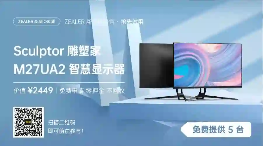 内置安卓系统,还能下百款 APP 当 iPad 用的 4K 显示器,你见过吗?雕塑家 M27UA2 智慧显示器上线 ZEALER 众测!配备 4K 高配臻彩屏 + HDR 高动态范围,画面自然生动更清晰;搭载 6 核 CPU + 独立 GPU 旗舰内核,系统体验丝滑流畅;还有震撼全景音效、无线 Wi-Fi 6、支持 65W 供电的全功能 C 口...想知道体验如何?扫上方二维码或戳左下角「阅读原文」即可前往参与。