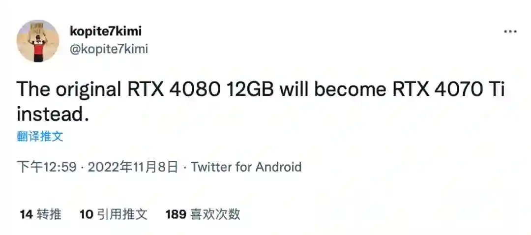 改名为 RTX 4070 Ti
