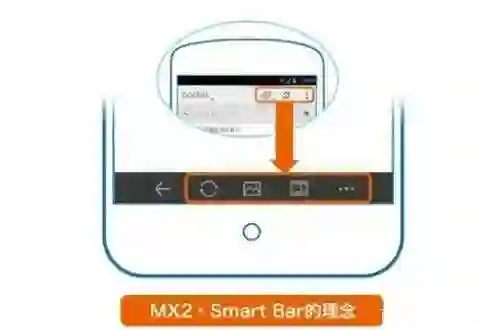 公开资料显示,早在魅族推出 MX2 智能手机时,魅族就将 Smart Bar 整合了返回键和菜单键,手机屏幕的底部区域左侧和右侧分别显示返回与菜单键,中间留有三个软件功能。如果出现软件功能按钮过多的情况,Smart Bar 会将其自动放进菜单栏。保持系统界面简洁美观,风格统一也不容易出现误操作问题。